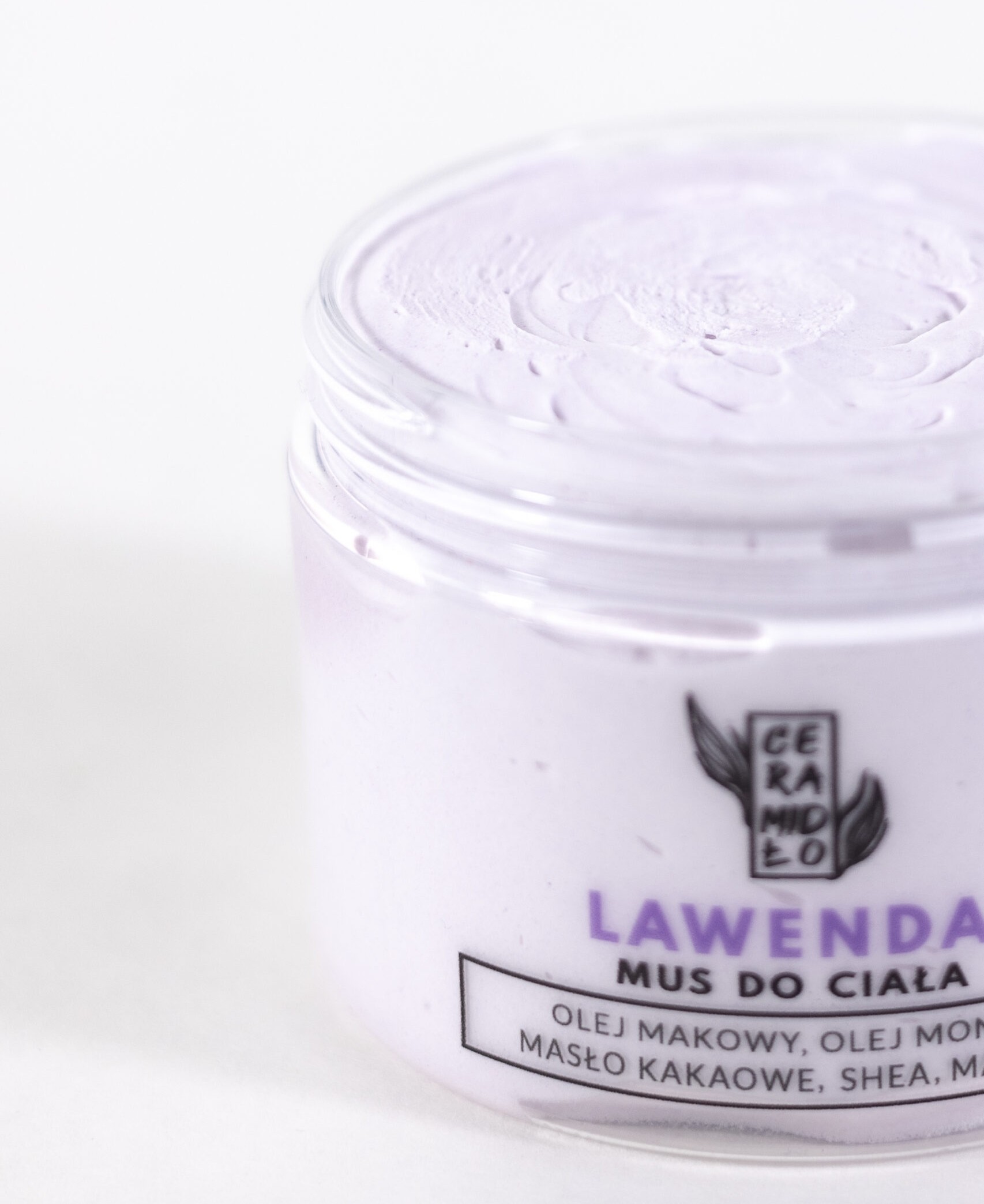 Składniki: masło shea, olej ze słodkich migdałów, olej makadamia, masło kakaowe, gliceryna roślinna, masło mango, olej z maku, olej monoi, olejek eteryczny lawendowy, witamina E (tokoferol), olej z nasion słonecznika, mika.